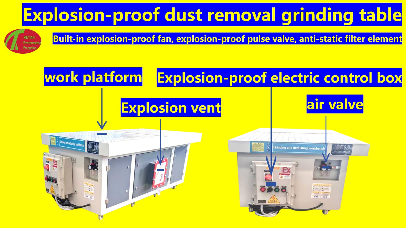 Тегістеу кезінде желдеткішті іске қосыңыз. Желдеткіштің әсерінен үстелдегі және тік пластинаның бүйіріндегі ауа кіретін жердегі ауа сорылады. Құрамында шаң бар ауа ауа кіретін тесік арқылы рамаға түседі және ауа біркелкі адсорбцияланады және сүзгі картриджімен жиналады. Сүзгі картриджі ауадағы шаңды сүзеді, ал шаң жинау арқылы тазартылған ауа раманың төменгі жағындағы ауа шығатын тесік арқылы атмосфераға шығарылады.