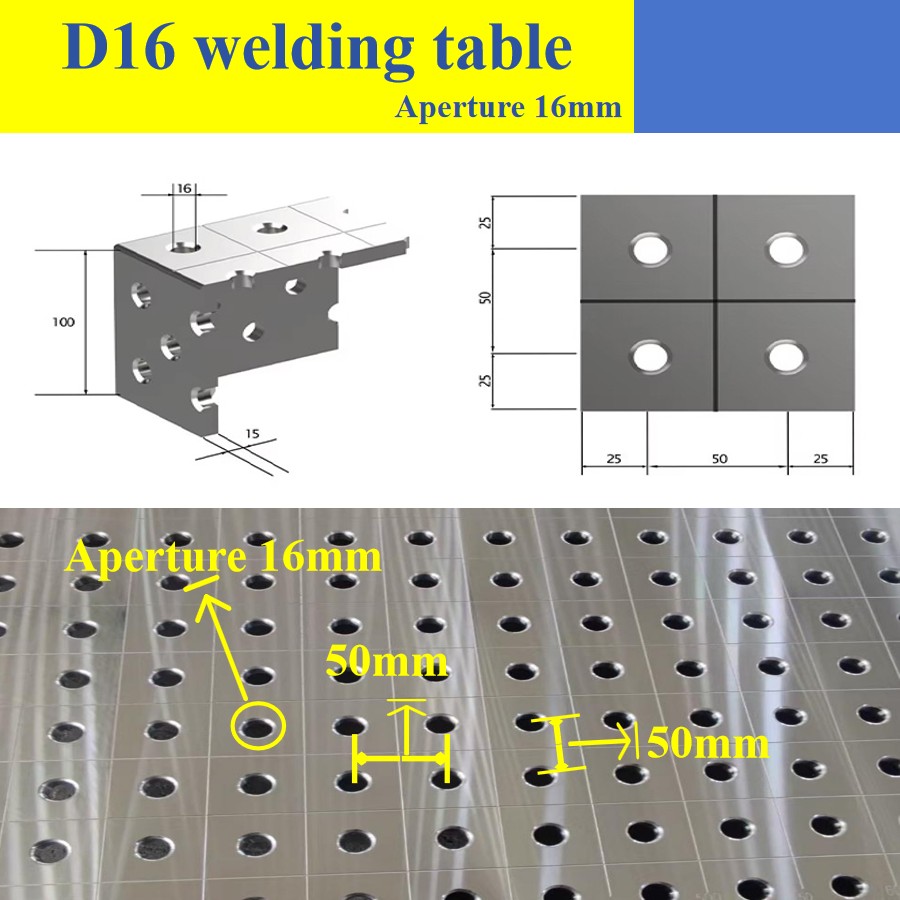 Көп функциялы бейімділік: Үстел үсті қолмен доғалық дәнекерлеу, аргон доғасымен дәнекерлеу және газдан қорғалған дәнекерлеу сияқты әртүрлі процестермен үйлесімді, әртүрлі құрал жабдықтарын жылдам бекіту үшін алдын ала бұрғыланған орналасу тесіктері мен арматураны орнату позицияларына ие.