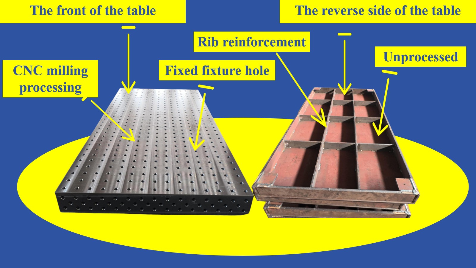 Жоғары тұрақтылық: Дәнекерлеу қожының алдын алу үшін азотталған жабыны бар қалыңдатылған болат табақ үстелі 500–1000 кг жүктемені көтере алады, дәнекерлеу операциялары кезінде шайқауды немесе жылжуды қамтамасыз етеді және дәнекерлеу дәлдігін тиімді түрде арттырады.
